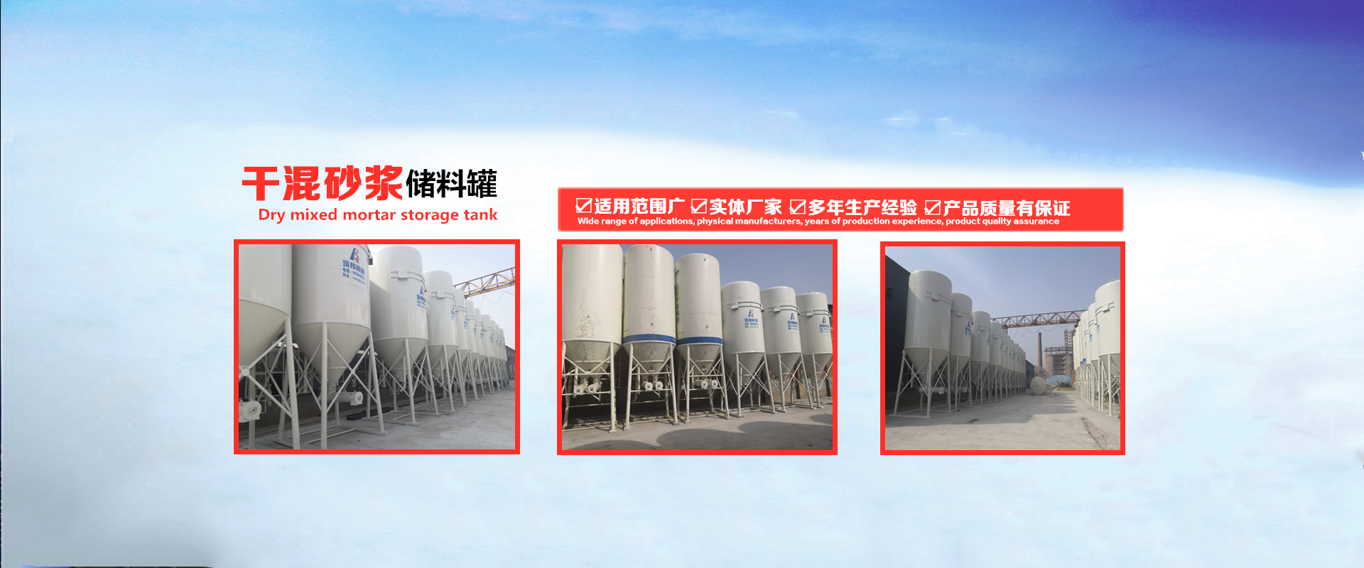 主要產(chǎn)品有:干粉砂漿罐 干粉砂漿設(shè)備 干混砂漿儲料罐 干粉砂漿生產(chǎn)線 干混砂漿攪拌機 連續(xù)式干粉砂漿攪拌機、砂漿連續(xù)式攪拌器及配套控制系統(tǒng)、砂漿輸送泵、砂漿噴涂機、預(yù)拌砂漿GPS管理系統(tǒng)、砂漿保水增塑劑等一系列產(chǎn)品,同時為砂漿企業(yè)提供專業(yè)的投資咨詢、建廠指導(dǎo)、上門制作砂漿罐、技術(shù)培訓(xùn)等一條龍服務(wù)。